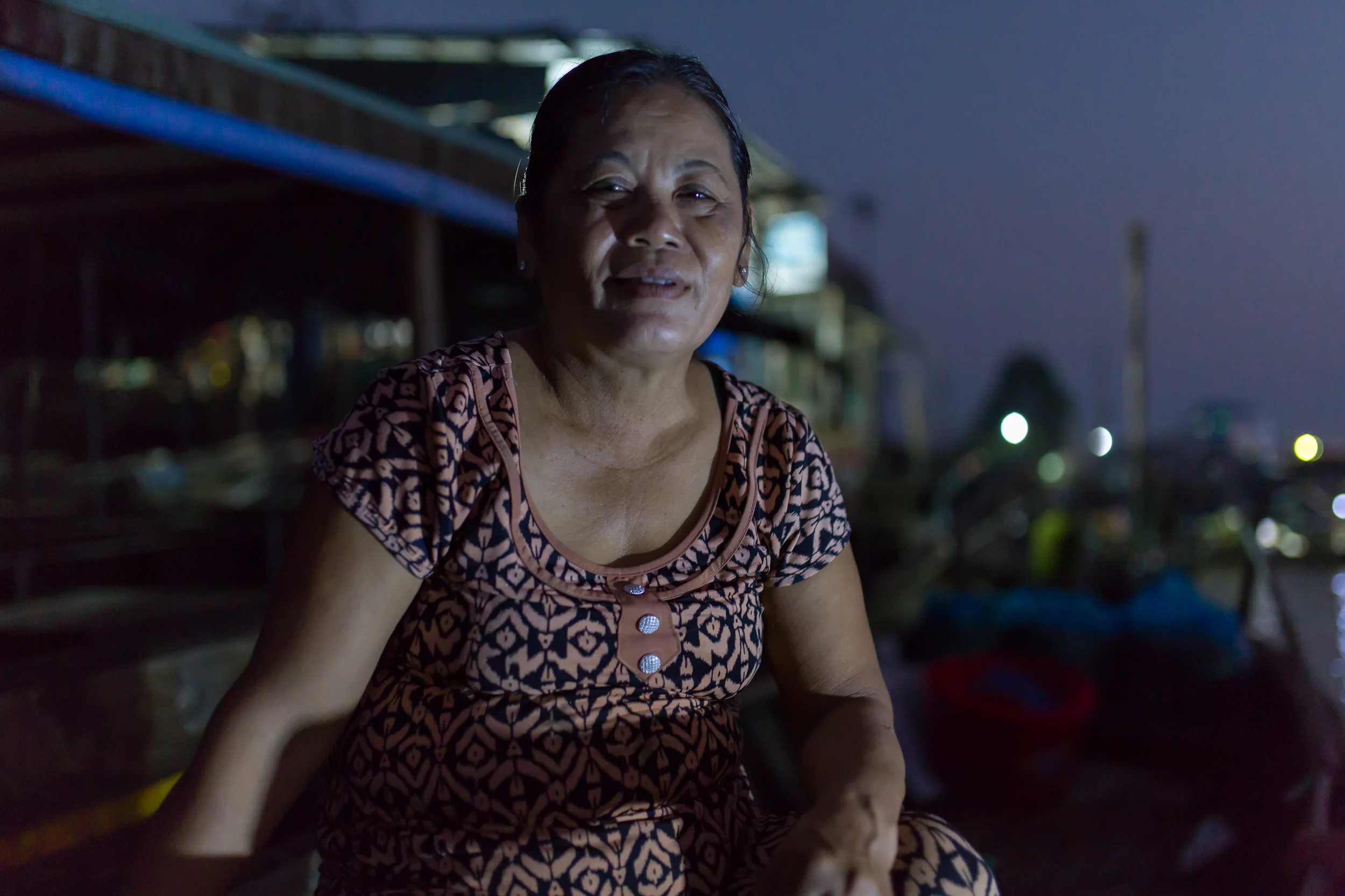 Hai is 68, and she and her husband live much of their life on this boat. For the last eleven years, they've travelled from a province about 100 kilometres away, buying and selling produce. They make $10-$15 for each 3-4 day trip. They go home every two months or so, but otherwise, sleep every night on the boat. Hai never had the chance to go to school and is illiterate- not uncommon for women of her generation. Despite her age, there is no talk of retirement. "I'm just living day-to-day," she says. "If I'm healthy I can keep working, keep earning money. So my health is the most important."